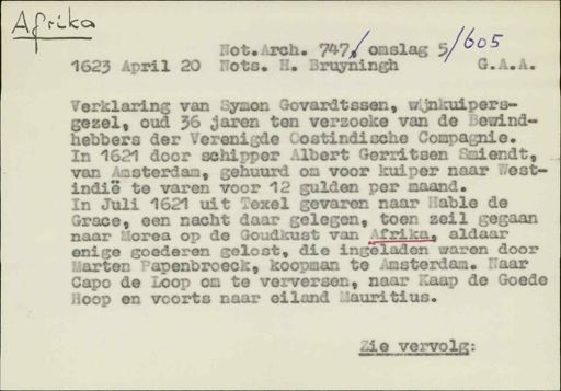 Stadsarchief Amsterdam, archieftoegang 30452, Archief van Simon Hart: (gedeeltelijke) toegang op de notariële archieven, inventarisnummer 351, Regesten van akten in de Amsterdamse notariële archieven en enige andere bronnen. 1578 - ca. 1800, Collectie Hart', 'H' of 'hoofdsysteem'. Regesten geordend op trefwoord. 1578 - 1700, 1711 - ca. 1800, Aardrijkskundige namen, Afrika - Grand Lahou