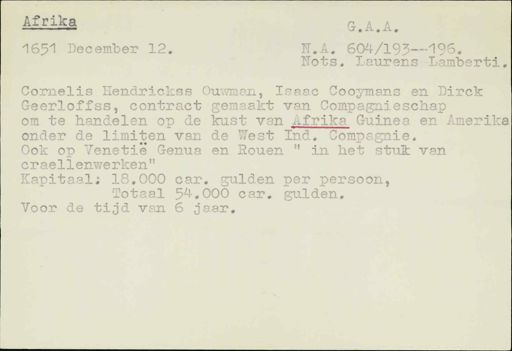 Stadsarchief Amsterdam, archieftoegang 30452, Archief van Simon Hart: (gedeeltelijke) toegang op de notariële archieven, inventarisnummer 351, Regesten van akten in de Amsterdamse notariële archieven en enige andere bronnen. 1578 - ca. 1800, Collectie Hart', 'H' of 'hoofdsysteem'. Regesten geordend op trefwoord. 1578 - 1700, 1711 - ca. 1800, Aardrijkskundige namen, Afrika - Grand Lahou