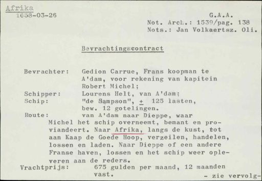 Stadsarchief Amsterdam, archieftoegang 30452, Archief van Simon Hart: (gedeeltelijke) toegang op de notariële archieven, inventarisnummer 351, Regesten van akten in de Amsterdamse notariële archieven en enige andere bronnen. 1578 - ca. 1800, Collectie Hart', 'H' of 'hoofdsysteem'. Regesten geordend op trefwoord. 1578 - 1700, 1711 - ca. 1800, Aardrijkskundige namen, Afrika - Grand Lahou