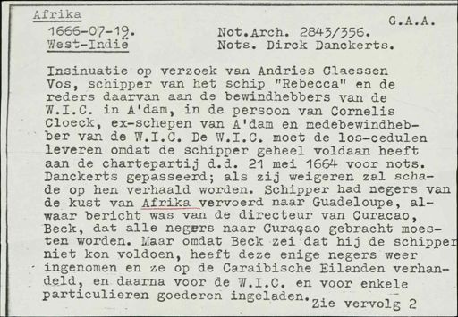 Beck, dat alle negers naar Curaçao gebracht moes-