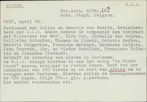Betreft de levering van slaven in Suriname.