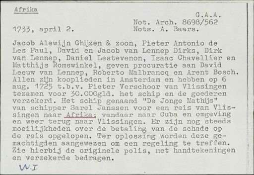 Stadsarchief Amsterdam, archieftoegang 30452, Archief van Simon Hart: (gedeeltelijke) toegang op de notariële archieven, inventarisnummer 351, Regesten van akten in de Amsterdamse notariële archieven en enige andere bronnen. 1578 - ca. 1800, Collectie Hart', 'H' of 'hoofdsysteem'. Regesten geordend op trefwoord. 1578 - 1700, 1711 - ca. 1800, Aardrijkskundige namen, Afrika - Grand Lahou