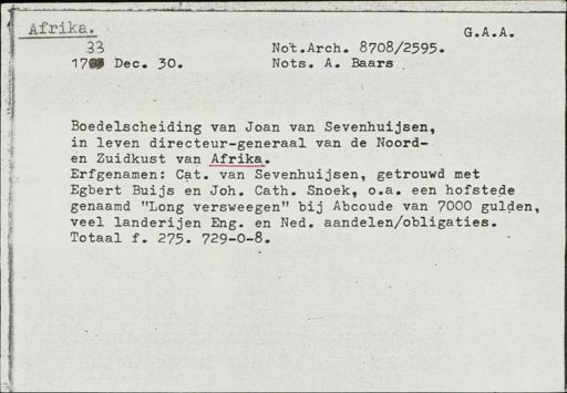 Erfgenamen: Cat. van Sevenhuijsen, getrouwd met