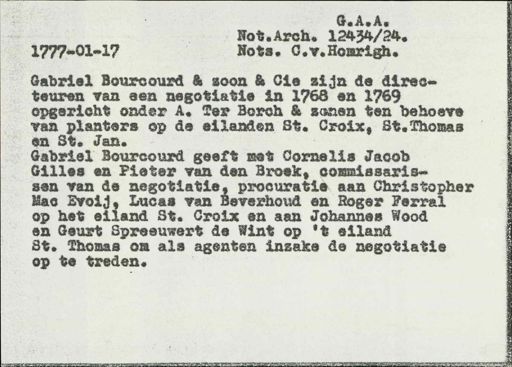 Stadsarchief Amsterdam, archieftoegang 30452, Archief van Simon Hart: (gedeeltelijke) toegang op de notariële archieven, inventarisnummer 367, Regesten van akten in de Amsterdamse notariële archieven en enige andere bronnen. 1578 - ca. 1800, Collectie Hart', 'H' of 'hoofdsysteem'. Regesten geordend op trefwoord. 1578 - 1700, 1711 - ca. 1800, Aardrijkskundige namen, West-Indië 1777 - West-Indië Argentinië - Brazilië 1636