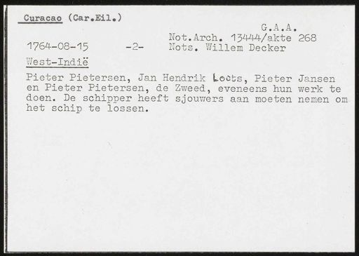 Amsterdam City Archives, archive number 30452, Archief van Simon Hart: (gedeeltelijke) toegang op de notariële archieven, inventory number 370, Regesten van akten in de Amsterdamse notariële archieven en enige andere bronnen. 1578 - ca. 1800, Collectie Hart', 'H' of 'hoofdsysteem'. Regesten geordend op trefwoord. 1578 - 1700, 1711 - ca. 1800, Aardrijkskundige namen, Curaçao 1697 - Curaçao 1770