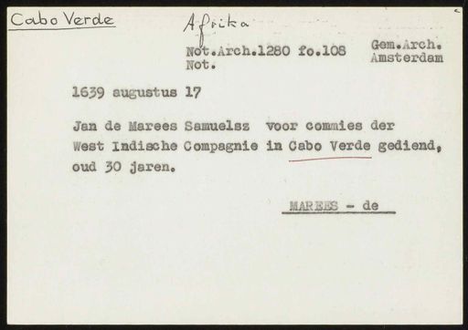 Stadsarchief Amsterdam, archieftoegang 30452, Archief van Simon Hart: (gedeeltelijke) toegang op de notariële archieven, inventarisnummer 352, Regesten van akten in de Amsterdamse notariële archieven en enige andere bronnen. 1578 - ca. 1800, Collectie Hart', 'H' of 'hoofdsysteem'. Regesten geordend op trefwoord. 1578 - 1700, 1711 - ca. 1800, Aardrijkskundige namen, Kaapverdische eilanden - Noord-Amerika/chronologie Ver.Staten 1649