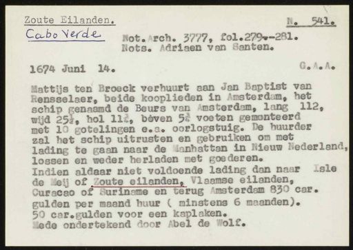 Stadsarchief Amsterdam, archieftoegang 30452, Archief van Simon Hart: (gedeeltelijke) toegang op de notariële archieven, inventarisnummer 352, Regesten van akten in de Amsterdamse notariële archieven en enige andere bronnen. 1578 - ca. 1800, Collectie Hart', 'H' of 'hoofdsysteem'. Regesten geordend op trefwoord. 1578 - 1700, 1711 - ca. 1800, Aardrijkskundige namen, Kaapverdische eilanden - Noord-Amerika/chronologie Ver.Staten 1649