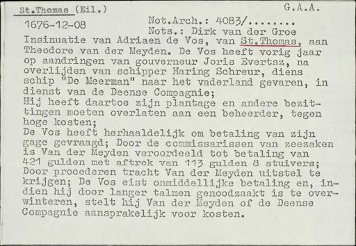 Stadsarchief Amsterdam, archieftoegang 30452, Archief van Simon Hart: (gedeeltelijke) toegang op de notariële archieven, inventarisnummer 373, Regesten van akten in de Amsterdamse notariële archieven en enige andere bronnen. 1578 - ca. 1800, Collectie Hart', 'H' of 'hoofdsysteem'. Regesten geordend op trefwoord. 1578 - 1700, 1711 - ca. 1800, Aardrijkskundige namen, St. Thomas - Guyana(Wilde kust) Chakau