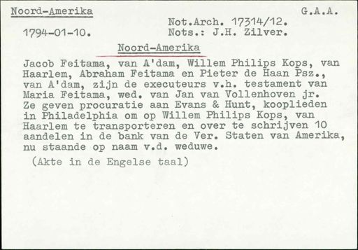 Stadsarchief Amsterdam, archieftoegang 30452, Archief van Simon Hart: (gedeeltelijke) toegang op de notariële archieven, inventarisnummer 356, Regesten van akten in de Amsterdamse notariële archieven en enige andere bronnen. 1578 - ca. 1800, Collectie Hart', 'H' of 'hoofdsysteem'. Regesten geordend op trefwoord. 1578 - 1700, 1711 - ca. 1800, Aardrijkskundige namen, Ver. Staten 1794 - Ver. Staten 1825