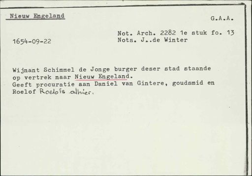 Stadsarchief Amsterdam, archieftoegang 30452, Archief van Simon Hart: (gedeeltelijke) toegang op de notariële archieven, inventarisnummer 358, Regesten van akten in de Amsterdamse notariële archieven en enige andere bronnen. 1578 - ca. 1800, Collectie Hart', 'H' of 'hoofdsysteem'. Regesten geordend op trefwoord. 1578 - 1700, 1711 - ca. 1800, Aardrijkskundige namen, New England - New York de stad