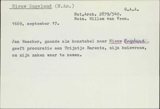 Jan Waacker, gaande als konstabel naar Nieuw Engeland,