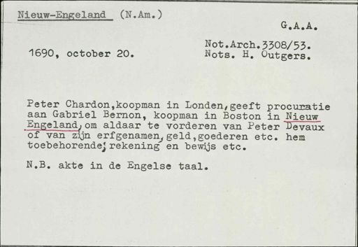 aan Gabriel Bernon, koopman in Boston in Nieuw