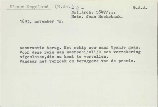 Stadsarchief Amsterdam, archieftoegang 30452, Archief van Simon Hart: (gedeeltelijke) toegang op de notariële archieven, inventarisnummer 358, Regesten van akten in de Amsterdamse notariële archieven en enige andere bronnen. 1578 - ca. 1800, Collectie Hart', 'H' of 'hoofdsysteem'. Regesten geordend op trefwoord. 1578 - 1700, 1711 - ca. 1800, Aardrijkskundige namen, New England - New York de stad
