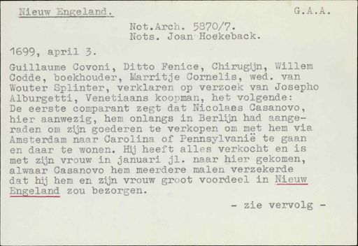 De eerste comparant zegt dat Nicolaes Casanovo