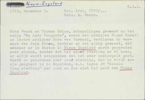 Stadsarchief Amsterdam, archieftoegang 30452, Archief van Simon Hart: (gedeeltelijke) toegang op de notariële archieven, inventarisnummer 358, Regesten van akten in de Amsterdamse notariële archieven en enige andere bronnen. 1578 - ca. 1800, Collectie Hart', 'H' of 'hoofdsysteem'. Regesten geordend op trefwoord. 1578 - 1700, 1711 - ca. 1800, Aardrijkskundige namen, New England - New York de stad