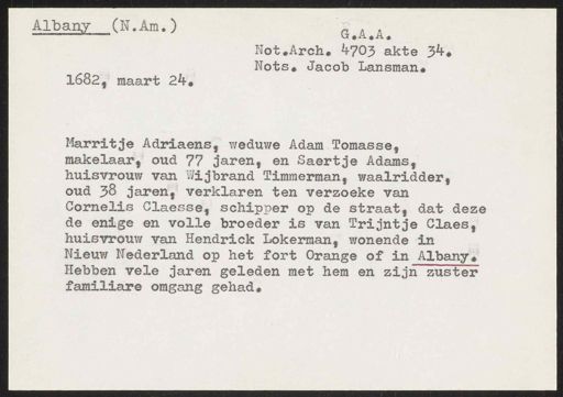 Stadsarchief Amsterdam, archieftoegang 30452, Archief van Simon Hart: (gedeeltelijke) toegang op de notariële archieven, inventarisnummer 359, Regesten van akten in de Amsterdamse notariële archieven en enige andere bronnen. 1578 - ca. 1800, Collectie Hart', 'H' of 'hoofdsysteem'. Regesten geordend op trefwoord. 1578 - 1700, 1711 - ca. 1800, Aardrijkskundige namen, New -York/Albany - Nieuw Nederland