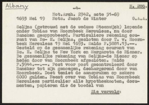 Stadsarchief Amsterdam, archieftoegang 30452, Archief van Simon Hart: (gedeeltelijke) toegang op de notariële archieven, inventarisnummer 359, Regesten van akten in de Amsterdamse notariële archieven en enige andere bronnen. 1578 - ca. 1800, Collectie Hart', 'H' of 'hoofdsysteem'. Regesten geordend op trefwoord. 1578 - 1700, 1711 - ca. 1800, Aardrijkskundige namen, New -York/Albany - Nieuw Nederland