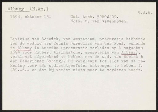 te Albany in Amerika (procuratie verleden op 6 augustus