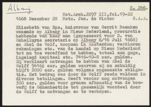 wonende op Albany in Nieuw Nederland, procuratie
