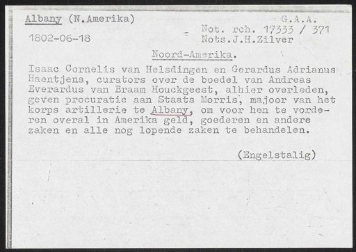 Stadsarchief Amsterdam, archieftoegang 30452, Archief van Simon Hart: (gedeeltelijke) toegang op de notariële archieven, inventarisnummer 359, Regesten van akten in de Amsterdamse notariële archieven en enige andere bronnen. 1578 - ca. 1800, Collectie Hart', 'H' of 'hoofdsysteem'. Regesten geordend op trefwoord. 1578 - 1700, 1711 - ca. 1800, Aardrijkskundige namen, New -York/Albany - Nieuw Nederland