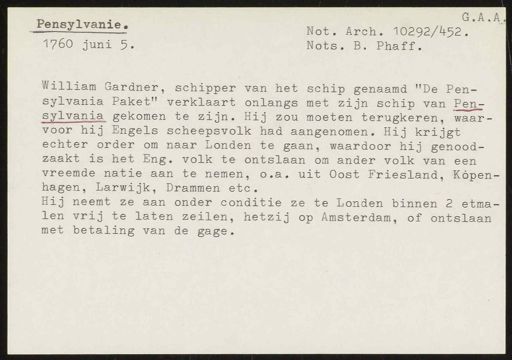 Stadsarchief Amsterdam, archieftoegang 30452, Archief van Simon Hart: (gedeeltelijke) toegang op de notariële archieven, inventarisnummer 360, Regesten van akten in de Amsterdamse notariële archieven en enige andere bronnen. 1578 - ca. 1800, Collectie Hart', 'H' of 'hoofdsysteem'. Regesten geordend op trefwoord. 1578 - 1700, 1711 - ca. 1800, Aardrijkskundige namen, Pennsylvania - Yorkriver