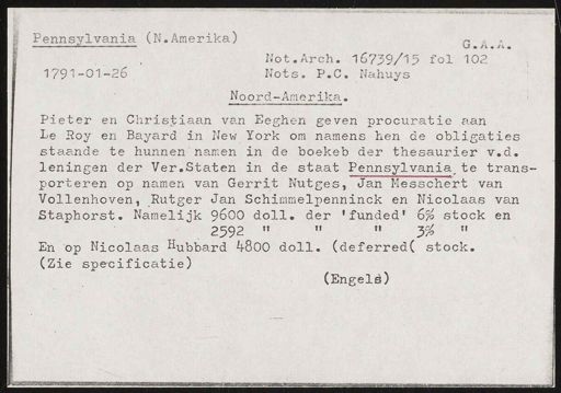 Staphorst. Namelijk 9600 doll. der 'funded' 6% stock en