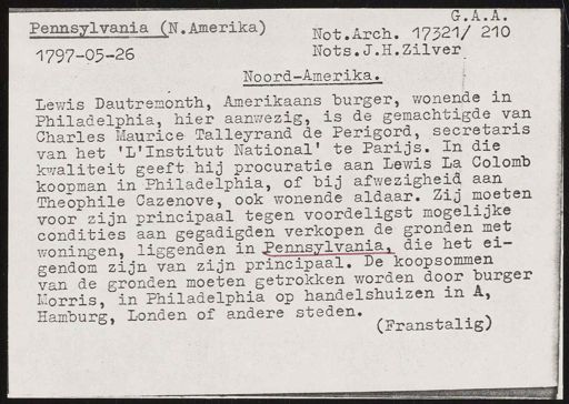 Stadsarchief Amsterdam, archieftoegang 30452, Archief van Simon Hart: (gedeeltelijke) toegang op de notariële archieven, inventarisnummer 360, Regesten van akten in de Amsterdamse notariële archieven en enige andere bronnen. 1578 - ca. 1800, Collectie Hart', 'H' of 'hoofdsysteem'. Regesten geordend op trefwoord. 1578 - 1700, 1711 - ca. 1800, Aardrijkskundige namen, Pennsylvania - Yorkriver