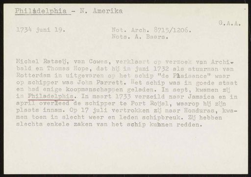 in Philadelphia. In maart 1733 verzeild naar Jamaica en in