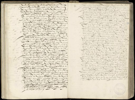 vande gemeene goederen ende Die naeste vrienden vande voorn. haren man Daer van laeten volgen Die gerechte helfte van welcke helfte D'voorn. Tijmen Janssen d'voorss. vijffhondert gul. voor aff Sal genieten ende Pieter Janssen De lancxtlevende zynde sal eren wel (: alwaert Dat hij hem ten tweeden houwel. begaff alle Die goederen als boven behouden ende nae Syn Overlyden geerfft werden by sijn vrienden als vooren wtgedruckt is blyvende altyts Dvoorn. Tijmen Janssen behoudende t'voorss. pralegaet van vijff hondert gul. willen Oock D'voorss. Testateuren ende verclaren mits Desen Dat waert alsoo Dat die tegenwoordich henne testament nijet en conde oft vermochte Sijn effect Sorteren als den testa¬ ment Dat t'selve zal moeten zijn effect Sorteren als Codicille al waert Soo Dat alle De Solemniteijten Die men Inden testamente gewoonelijck is te Observeren in dese niet en ware geobserveert Alle welcke puncten ende t'geene voorss. Staeten verclaren Die testa¬ teurs ende elcx van hen te wesen haer W¬ terste ende Laetste wille twelck zij wilden Dat alsulcx off als codicille gifte ter cause Des Doots, oft anders Soo een yders testament ende vuyterste wille alder vast ende crachtichste plaets houden ende Subsisteren sal mogen van goeder waerden gehouden te hebben, ende Volcommen effect te Sullen sorteren niet tegenstaende eenighe Statuten keuren oft ordonnantien van oft steden desen contrarierende versouckende hier van gemaeckt ende hen Acten een off meer In Debita forma gelevert te werden Gedaen binnen der voorss. Stede ten huijse mijns nots. ter presentie van Albert franssen ende Jacob van Schaer laecken getuijgen hier toe versocht Die desen neffens den comparanten Inden protocolle mijns Nots. Onderteeckent hebben ende sonderlinghe gebeden ten Dage Jare ende plaetsse als boven 32 Inden name ons heeren Amen, Inden Jaere vander geboorten desselffs ons heeren ende salichmaeckers Jhesu Christy, Duysent vyff hondert negen ende tnegentich, indictione duo decima, opten vyffden november, smichdaechs die clocke omtrent twaelff uren, Impererende die hoochgeborenste ende grootmachtichste forste ende heere rudolpho, bij der gratien Godts, Die tweede roemsche kayser, vandier name altyt te Jae vermeerder srycx, int Drientwintich synre kayserlycke electie, Compareerde voor my Jan franssen bruyninck, openbaer nots. tot Aemstelredamme residerende, bijden hove 32 van hollandt geadmitteert, ter presentie vanden Ondergeschreven getuijgen, d'eersaeme Carel Walraven, coopman van middelborch, tegenwoordel. binnen deser stede residerende, my nots. seer wel bekendt synde, gaende, staende, gesont van lichaemen, syn redene memorie, ende verstant wel machtich ende volcommel. gebruyckende, alst uterl. bleeck ende scheen, die welcke overleggende die fragiliteyt ende broscheyt der menschelycker natuyren nimmermeer blyvende in eenen staet ende dat die natuyrlycke doot allen menschen seecker is, ende die ure vandien seer onseecker, gemerct oock hy testateur, van meyninge is, met Godts hulpe, van hier te vertrecken, ende hem te begeven op een verre ende gevaerlijcke reijse, begeerde derhalven die selve onseeckere ure des doots, mits testamentelijcke dispositie, te prevenieren ende voor te commen, heeft inder beste forme, ende nae style van rechte, met vryen ombedwongen wille, soo hy seyde, gedisponeert over syn testament ende uterste wille, in manieren naevolgende, Inden eersten heeft die testateur gerevoceert, wederroepen, ende te niete gedaen, revoceerde, wederriep, ende dede e niete by desen, alle voorgaende testamenten, alle codicillen, ende andere maeckingen, by hem voor date deses eenichsins gepasseert, voor wien oft wat publycque persoonen dattet geweest mach syn sonder dat die selve voirder cracht hebben, oft effect sorteren sullen, ende op nieuws disponerende, bevelende die testateur, syn siele inde