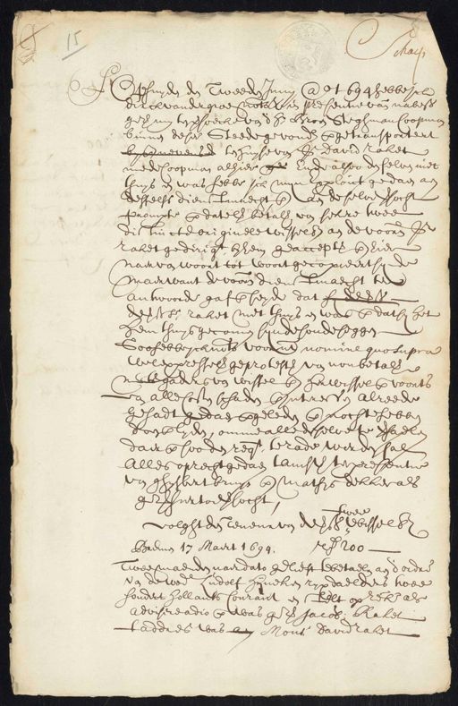 Amsterdam City Archives, archive number 5075, Archief van de Notarissen ter Standplaats Amsterdam, 1578-1915, inventory number 4168, DIRK VAN DER GROE, Minuutacten, 1694 Juni 1-1694 Juli 31; alphab.index in no. 4279., 1694