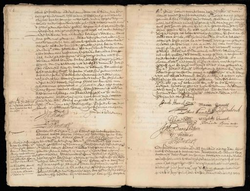 24 komen te possederen ende dat omme daar aan tevinden haar betalinge vande voorsz. vijffhondert ende sessendertigh gul. seventien stuijvers sen acht penningen mette kosten vandien, volgens sen teneur vande bovenstaande obligatie, Met volkomen macht omme d'selve getranfporteerde goederen te sinnen uijt eijgener authoniteijt ende sonder eenige rechtsplegingh, te mogen aan vaarden, verkopen ende beneficeren, doen aanbaarden, verkopen ende bereficieren soo als haren goeden raat gedragen sal, sonder dat nochtans hier mede int minste verneticht wert off novatie geschiet vande bovenstaande obligatie off vande vonnisse die gemelte regenten tot laste van hem Compte. hebben geobtineert opte maij abonts vierschaar alher alsoo verstaan wert deese alleente geschieden tot meerder seberth seijt vande gemelte regenten ende in gevolge van dien alles sijn Volkomen effert te moeten sorteren, ter tijd ende wijle gemelte Regenten van hun achterwesen met de Noste daarom te doen ende lijden effectuelik sullen sijn voldaan ende betaalt Tot nakoninge deses verbutt hij Compt. sijn persoon ende alle sijne goederen roerende quroerende present ende toekomende onderwerpende d'selve allen rechten ende rechteren, Voorts Compareerde d'hersame Jan Selijns mede regent vande voorsz. huijs-knnen ende heeft dese transporte voor gemelte armen geaccepteert in Mantem 620. ofte sooverre tselve thaaren voordeel streckt, voorts vermane ick nots. dat dese binnen acht dagen eerstkomende Preeijs, moste werden geregistreert ten sennetarij alhier inconformite vande wille keure deser stede, sonder argh ofte best In Amstelredamme gelege. t 72 v8ersdut desen 1e. Maijanio xviC. sessenvijftigh. Ter presentie van Jacob 6: register vande Janel, ende Gerrit Bosman als getuijgen hier overgestaan, Fransporten der stat Amster. Jan Gelijns Hendrick hterman A: Hamst J Bosmas J:de Winter N.P. Cocupareerde s d'her mr. Jacob Hamel als Executeur vanden advocaat voorden hove van Hollant als Executeur vanden Testa mente van wijlen Heurik Hamel en Halttes Drijvens Zalr. Jen # ende in die qualitu en hun leven echteluijden, Item mr. Gerard Elk Maria Samel gealsisteert met haarman artholomeus Blijdenbergh voor hem selven ende mede Dr Elbert Hamel kinderen ende mede Erffgenamen vande ƒ als proniratie hebbende van mr. Joan van gemelte Htenrik Homel ende aaltje Drijvers vet alle uij straten raad' ondinaris notario bekent verklarende tesamen ende elck int bij sonder v an inden provincialen Hove hoe dat op de scheijdinge en deijlinge vande erffenisse van wijlen van Wtrecht sijn Hendrik Hamel ende aaltje Drijvers gedaan op den xxiii Junij mede Trecuteur xviC vierenvijftigh het huijs ernambocq staande op de # Elisabeth Hamel haarlemmerstraat en het achterhuijs op de princegracht bij de geassisteert met prince sluijs met hare respective erven, soo alls die bij de voorn. haar man Adriaan overledene sijn beseten, bij rechtvaardige lotinge sijn toegevalen Brouwer gt 26 Mr. gerard Hamel voornt voor deene helfte, ende Maria Hamel voorde gerechte wederhelfte, ende dat bijt maag-gescheijn gemaakt tusschen d'Erffgen. vande voorsz. overledenen is geconditien neert, dat iemand vande Erffgenamen met een ander aan eenigh ee past goet gemeen gevallen sijnde, en in gemeenschap ^ genegen te blijven, gehouden sullen sijn mat malkanderen te looten, Autsdat die gene die het lot toevalt de keur sal hebben sijn part aan sijn souus over se laten, off sijn solus part aan te nemen tot so sodanigen prijse als het hen in de voorsz. deijlinge aan getaxeert is, endat het selve recht d'een en ander sal hebben twee Jaren langh, en langer net in te gaen van date des voorsz. maag gescheijs. Sodist, dat sij Comparanten mits desen verklaren dat naat passeeren des voorsz. maag gescheij, in conformite vande tonditie hier voren gementioneert, de helft 100 Maria Hamel inde voorsz. huijsen en erven was toegeloot geheel en al ten prijse als haar d'selve is aangetaxeert bij mr. Jerard Hamel is overgenomen, ten overstaan ende met bewilligingh van hen Comparanten in alle schijne ende met sodanigh recht als oft het de voorsz. Houijsen en erven int geheel opde vorsz. scheijdinge hem ware ten deele gevallen. Ende versochten sij Compten. aan mij notario hier van acte om testrekkema behoren, sonder argh ofte list In Amstelredamme desen eersten maij ao. xviC sessenvijftigh Ter presentie van Johannes van Broeckhuijsen, ende Gerrit Bosman als getuijgen hier overgestaan Pacob. HamelE Marta Hamel Elbert Hanel dlijdenverck Elisabeth Hamel Hamel Adriaen Brou wer J Broeckhuijemn. J Adosman J:de Winter N.P. Compareerde eec Albert Andriesz van hitland out xxx Jaren, seijle maker, Ende heeft ten versoecke van Jacob Willemsz Blaauw hoogh bootsman, ende Sakle Dircxsz van harlingen bootsgesel onder presentatie van desen folenmelck te bevestigen/ oversclaert, ende getuijcht hoe waer is, dat hij getuijge nefsens de requiranten alle inde voorsz bedieninge inde Jare xvic vijffentijftigh gevaren hebbende 6 1662 opt schip de Jonge prins, daer schipper ^ Thamis hendricks van