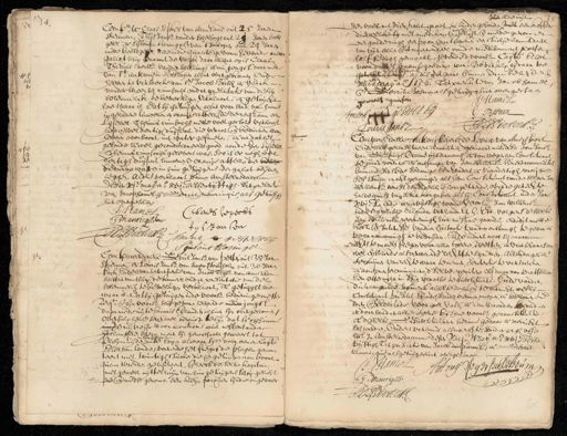 ge Item ende uijt een voet int vier kant groot in kinden gebonden met een koffer noch die welcke sij met medekanten ^ gelicht ende mede genonmen een goude ringh een paar hantschoenen een stuckje kamerdoeck van vier ellen ende 't meerendeel vande medikament potten half ledigh gemaakt gevende d' voorsz. Capts Ellet voor dattes spaanse goederen waren ende oversulx hij daar toe recht pdde gerechticht was aldus versklaart binnen Amstekre.des xii 1 aij ao 1656. Ter presentie van Jacob hamel GGerrit Bosman als getuijgen hier overgestaen gerrcit Jansen J. Hamel, C: Hosman Tmerk gebtelt bij J:deWinter N.P. Jantt Poilaus Compareerdeel Anthoni Reijersz de Leeuw van Amersfoort Ende heeft geronstitueert ende nachtich gemaakt mits desen Jan Jansz van Gestingh, Omme uijtden name ende van wegenhem Constituant te jnnen, vorderen ende ontfangen van Jan Willemsz Wuestwoonachtich binnendeser stede sodanige Een hondert ende vierendertigh caroli gul. ses stuijv: ende acht penningen als hem Constituant van den selven Ja Willemsz wuest deuchdelik is competerende, over de gerechte halve winst van seker kargasoen als hij Constituant inden Jare xviC. L ende eenenvijftigh voorde voorsz. Jan Willemsz inde Kagebische Dilanden verhandelt heeft. volgens desselfs Jan Willemsz reeckeningh hier neffens gaande, ende dit mette koste ende Interesse vandien Quitantie van den ontfangh te geven ende voor namaningh te bevrijden. Onde indient noot sij daaromme rechts te moeten plegen voor allen hoeeren, wetten, ende vierscharen soo wel eijsscherde als verwerende rechttte spreken, allen dagen ende termijnen van rechtewaar te nemen, sententie te versoecken ende aanhoren promincieren, d'selve executere off daar van te appellin Een Ofte meer in sijn plaatse te substitueren. Onde vorder diehaangaelde soo in ze alleste doen ende te verrichten weshij Constituant presct sijnde, soude kennen mogen, ende behoren te doen Belovelide voor goet dast ende van waarden tehouden ende doen houden alle tgene bij sijne voorsz. geconstitueerd end desselfs Gesubstitueerden hierinne gedaan ende verricht sal werden Ondert verband als na rechte, sonder argh ofte list In Amstelredamme desen xiiien Maij no. xviC sesten vijftigh. Ter presclitie van Jacob de amel, ende Gerrit manricque als getuijgen hier overgestaan P.MHamel Antonij Negen seneleum 169. Manriqgue g J: de Winter N.P.