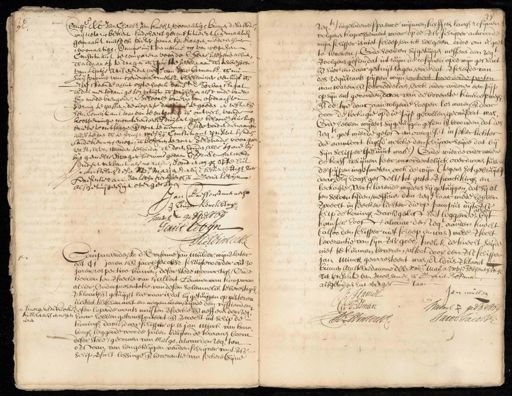 gt ge #Smorgens de klocke tusschen acht en negen uren ompe. &c Jan Claasz Jan knecht, woonachtigh binnen deser stede ini notario bekent. Ende heeft geconstitueert ende mactien gemaakt mits desen Pieter pama sijn swager mede alhier woonachtigh, Omme uijt den name en van wegenhen Constituant te compareren voor de E heere schepenen alhier ende aldaar op te dragen ende quijtte schelden aan ende ter behoeve van Lijntje Ariseerder wede van Jan Harmansz ende ni huijsvrouwo van Hendrik Cornelisz vleeshouwer een huijs ende Erve staande alhier opte hoeck van St. Barbarstraat ende dat met sodanige servituijten ende vrijheden als d' oude brieven - sijn mede brengende, Behoorl. brieven van opdrachte in korma te passeren, de koperse daarinne te goeden en vesten, bij hem constituant daar van te ontgoede ende outvesten, vande kooppenningen monterende ses duijsent gul. behoonl. kustingh brieve te ontfangen ende oper te nemen, Onde vorder dienaangen alles te doen ende te Drichten weshij Constituant present sijnde, soude kennen, mogen, ende behoren te doen Belovende voorgoet vast, ende van waarden tehouden ende doen houden, alle 'tgend bij sijn gemelte swager hierinne gedaan ende Dricht salwerden ondert verbant als na rechte, sonder argh ofte lut In Amstelre. desen xven. maij ao. xviC sestenvijftigh Ter presentie van Jan Levijn Kerckbergh ende Gerrit Levijn als getuijgen hier overgestaan Jan Laessentans noch 4 Thuijn Kercsberen Tmerck gestelt bij Saut levijn J:deWinter N.P. Compareerdes &c d' Eersame jan Mulder, wijnslater out 41 jaren, ende Jacob Jacobsz schuijtevoerder out 30 jaren,/ respective binnen deser stede woonachtigh, Ende hebben ten versoecke van S. albert Lemmerman koopman al hier Onderpresentatie van desen Solemmelik te bevestigen verklaart, ende getuijght hoe waar is, dat sij getuijgen op misteren achtent tugschen acht en negen men sijnde den vijftienden deser lopende mants maijten versoecke ende neffens den 2eq haar hebben getransporteert ende vervoecht int schip de koningh david, daar schipper op is jan minck van Ham¬ borgh leggende voorde palen buijten de Kraans boom deser stede, gecomen van Malga, alwarden reqt. ten ovestoan van hengetuijgen vanden schriver van1 voorsz. schip versocht lossinge ende beverantie van seckere Cijne 35 reqe ingeladene spaence wijnnen, kaeff, en langh rosijnen volgens koguossement, waar op de voorsz schriwer antwoorde mijn schipper is niet scheep,/ en ick hebgeen ordre om u goet te leveren, Ende hebben sij getuijgen neffens den 20q vervolgens gesien, dat int ruijm de tosijnen opde win gestuwt ende hiet en daar gestroijt lagen, ende dat verscheijde van des requirants pijpen wijn omtrent twee derde parten wan waren, ende seerreddeloos, Oock onder anderen een pijp op zijn ent gevonden, daar van de bovenste kunhoepwegh ende de twe daar aan volgende hoepen los waren ende daar door de leckagie op die pijp gevollen, gecauseert was Ende hebben wijders hij getuijgen gesien ende bevonden dat des 1 3eq. goet wierde gelost en overgeset in seker lichter die aamboort lagh d'welcke denschrijver seijde dat bij sijn schipper gehuurt was) Ende wierde onder andere de korff rosijnen seer oncordentelijck overdiers tussche de pijpen ingesmeten, oock de wijn Ctegens het gebruijck i daar ^ drij hoogh gestelt,/ tot grote verswackkingh en leckagie Verklarende wijders sij getuijgen, dat sij al ten selventijden neffen den reqt haar mede hebben Dpoecht in seecker lichter die op pampus uijtvrss schip de koningh Davidgelost had leggende ^ bijt kamper hooft / alwaar den 30q. aanden knecht alsoo den schipper niet scheep en was mede versocht leverantje van sijn voorss goed; 'twelck de knecht seijde niet te kinnen leveren / alloot door den voorss schipper Jan Minck gearresteert was, Aldus verklaort v binnen Amstelredamme desen xxiien maij ao. xviC. sessenvijftigh Ten preschitie van Jacob hamel ende Gerrit Bosman taan als getuijgen hier overges Jan mullen J: Hamel J Bemen ImdrelP gesoelt bij Jacob Jacobsz J:deWinter N.P.
