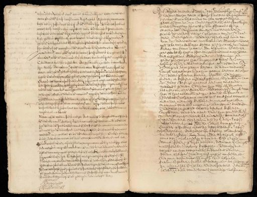 8 ƒ insinneeren volgens ordre vande gesamentlijcke heerereders voan gemelte schip kwapen van Wijburghtot Wbijburgh woonacktigh dat hij smmmant bereijt is te betalen sijn zestiende partint voorsz schip twapen van wijberch voor vierhondert sevenender, tigh ende een halve Rijxdaelder zijnde eenduijsent drieentnegentigh guldens vijftien st. ende tegens sevenduijsent Rijxdaalders gehele schipgerekent Mits dat den selven schipper alvoren sal gehouden sijn volgens de voorgemelte ordre over te leveren een Rechte Inventaris van alle tgunt bij hooors schip behoort en geweest is als mede alle de documenten als haar konincklijcke majesteijts Christiona brieff, inspector Augustinus Larssen Hanstro ijn Brieff Burger mr. ende raad van Wijburgh haar spas die haarweelgelts gekoft hebben ende wat hij wijders anders heeft van tigh te leveren en van alles goede ende deugdelijcke Reeckeninge daar ende booven presenteert hij jusumant nogh aande gemelte schiperte willen goeteren ende betale n (uijtfijn rijgen motijff roe wel tot date daartoe vande gemelte Reders geevordre gesadt hebben te in Willem goet doen ende betalen de waarde van een restiende part eptien ijsere stujcken met sijn toebeboor en gelijck de selve tot Wijburch fijn leggen de Ende bij resuijs ende non acceptatie van de sijne billicke presentatie soo protesteert hij jusinnant van kotten scheden ende Interesen ende Boijders als na Rechte daar op de voorn. pels meijer Antvoorde is bengereet ant vrsschp te leveren aanst. Anthani Beuckman offordre hebbende mits betolende ijs restiende part scheeppoant vors schip ende den aankleven vandien als mede sijn zestiendepart inde tien stucken ende aankleven ende vorders mijn goet doe ende betalen alle mijne steerde kosten schaden ende Interessen maarde drie voorgemelte briejven en owel ick met overleveren en soo deselve oemijn naam geteijckent sijn ende dien volgens mijn beswaert oinde ondie te restitueeren temeer d'selve doormijn grote delegentie ende v volgen geoltineert ende bekomen ijn protesterend ick Rutgerpels meijer oversulcx op e tegens d' vorsz. Benckmanenorere van kotten schaden ende Interessen geledensen nogh te lijden ende hoiders als na Rechte Alletwelcke bij den B Beuckman gehoort sijnde Valaaerde bijde vorsz. sijne jusinnatie ene protestatie te persilteren endte protetteren als boven Actum in Amstelredamme Terpresentie van Jacob hamels Ee errit Manricque als getuijgen hier overgestaan Hamnel Ji Manricque J: de Winter N.P. 91 ƒ ac Op Huijden den sevenden Martij ao. xviC sessenvijftigh Comp Item d'Tersame Abraham verlet ende haasje Claas Neus sijn huijsvrouwe d'Eerbane Maria Schut moeder van haar wettige kinderen geteelt bij haar zale. man Cornelis Claasz Neus, ende frans Snijder vader ende vooght van sijne wettige soor geprocreert e Zijn overleden Za. Huijsvrouw Annetje Claas kens / alle indie qualite de rechte ende eenige Erffgenamen van zale. Claas Neus Ende geliede ende bekende bij desen uijt hande van haar zalr. vaders weduwe hare stieffmoeder Marritje Goverts wel ende ten vollen ontfangen tehebben alle hare voorn. zale. vaders klederen van Limen en wolle, Item kleijnodien ende alle het gene een tot sijn hals en lijve eenichsints behoort magh hebben miet uijtgesondert, Mitsgaders mede alle de penningen ende gerede gelde volgens haar Comparantens vaders zale. aan wijsinge bij hem metter dood ontruijmt, welbevonden ende d'selvige na haar genomen te hebben. bekennen vorders stj Compt. noch ontfangen ende na haar genomen te hebben alle hare zal. vaders geschreven boecken, registers, rekeningen et iheer brieven, en papieren niets uijtgesondert, sulx datter ^ in haar zale. vaders sterfhuijs noch vant eene noch vant ander meerder is gebleven. Derhalven haar voorn. Stiesmoeder hier mede van alles Pantegende. Belovendes Compte. voor haar ende hare nakomelinge hare gemelte stiefmoeder ende desselfs Erffgenamen om iets wes vant gunt voorss is net alleen niet meer te eijsschen, manen,/ oft molesteren maaroock voor alle namaninge ende aansprake te bevrijden Inde wat aangaat het Huwelix kontract tusschenhen Compte. voorn. vader ter eenre. Ende haar gemelte stief moeder marritje Goverts, ter anderesijde voor den Nots. Rauens Lamberti opgerecht / in date den i Julij ao. xviC tweenveertigh, op Item sijn Codicil voor gemelt 8 Lamberti gepasseert in date den xxvi septemb. ao. xvi vijffenveertigh. mitsgaders sijn Lodigillen off ampliartien van dates den Xxiiien Julij Junij ende den xii augusti beijd anno xviC vijffenvijftigh voor den Nots David Doornick en sekere getuijgen verleden, verklaren sij Compte. malle ponicten ed articulej tapproberen. Belovende dien volgens aan haar voorgemelte stiefmoeder te sullen voldoen alle 'tgene haar daar mit nogh is competerende hier voren verbindende sijl ompte. hare respective personen ende goederen, present ende toekomende tot bedwomat ij haar van allen rechten ende rechteren, Ende specialik verbinden ed Caberen in desen voorde voorsz. onmondige Earffgenamen