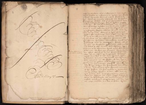 2 Alsoo de kinderen ende 3 Een stoelen slaes met een min, soo ten aensien, 2 alsoo de hijnderen ende Erffgenaemen van wijlen Engel Dibbers om restitutie te hebben van seecke¬ de penn: bij amolt Sterninck wegens seeckere bij om Oterinck vercochte Capitaele ten Comptoire genevel van hollandt ende 't jus patronatus daer toegehorende ontfangen, poces hebben moeten aenvangen, soo voor de magistraet van Amsteldam als in gelderlant bij besaet voor de bancken tusschen maes en wael, waer van oock die behoorlicke wete geexploijceert zijnde, ende door de wede. ende kijn¬ deren van den voorn. Oterinck in haere qualiteijten oppositie offte ontsaetinge daer tegens voorgenomen is als bij die respective acte te zien, ende dat den dach recktens van die respective saecken voor die Geuchte van Amsteldam, ende tusschen maese wael oude dienen, ende den aenlegaeren saecke, als ijder een noton ten hoogsisten gesundeert recht matigh ende billick is, ende de wede. ende kinderen haere Tesentie in de aditie van haers mans, ende vanders boedel onder benefitie van Inventaris binnen Amstel dam gedaen alleene van die nae verantschap de par¬ thijen, als ten wegende van de aendiale openinge van de staet door de wede. ende kinderen gedaen vriendelicke overcomen, dat de wede. ende kijnderen sullen renuntieren van alle oppositie soo door haer in maese wael is geschiet, ende de selve renuictiatie door haere volmachtigen adolff dartels daer ende soo het behoort ten prochocolle doen Regi¬ sturen ende tot dien eijnde speciale volmacht op hem passieren ende sich wachten in toecomende eenige vordere oppositie te doen offte daer te gens te doen doen meniger manieren, waer en tegens die kijnderen van wijlen Engel Dibbets be looven die procedumen tot amsteldam ende die tusschen maesewael aengevingen voor den tijt van negen maenden in staet te sullen souden
