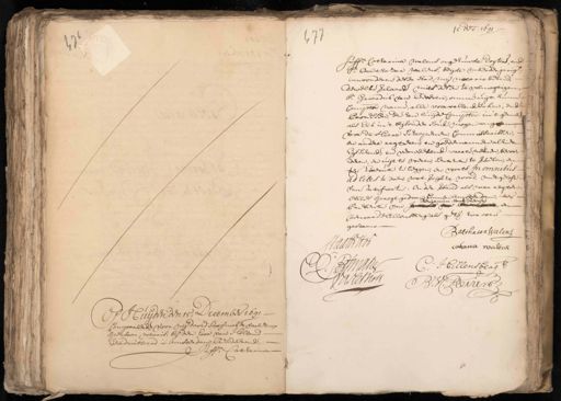Op Huijden den 15e„ December 1691 Compareerden voor mij david Stafmaker Varlet Openbaar notaris, bij den hove van Holland geädmitteerd t' Amsterdam Resideerende Juffr. Catharina 671 15 dec: 1691 Juffr„ Catharina Walens ongehuwde dogter, ende Sr„ Balthazar walens, beijde meerderjarig inwoonderen deser stad mij notario bekend dewelke verclaarde mits desen te volmagtigen Sr. Gerardus van Beveren, omme uijt hunne Comptn: name, alle voor vallende saken, ende Processen, die hen luijde Comptn: in 't gemeen als Elk uit bij sonder soude mogen aangen voor de Heere scheepenen, Commissarissen, en andere regteren, ende goedemannen alhier rijsschende, en veriederende waar te nemen, bevor¬ deren, en uijt te voeren, sententie te versoeken, en ter Executie te leggen, en voorts Momnibus adlites te doen, wat verlijscht word, met gecofte van ratificatie onder verband als naar regten Alles opregt gedaan binnen Amsterdam, ter deniamin van de Reviere Presentie van Coenraad Hillensberg als get. hier over gestaend Balthasar Walins Staat to Catina walens Hillensbergh
