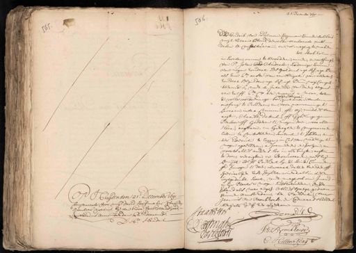 Op Huijden den 21e. december 1691 Compareerde voor mij David Stafmaker Varlet penbaar notaris, bij den Hove van Hollands gead¬ mitteerd t Amsterdam Resideerende D' Hr. Hendrik 50 21e„ December 1691. H Hendrik van Dulmen, Coopman binnen dese stad mijl Notaris bekend, dewelke verclaarde mits desen te Constitueeren, ende volmagtig te maken tot Stokholm in sweden, omme te bevorderen, innen, en ontfange van Sr. Johan Eld Anderson, soodanige somme van negen hondert ses guldens, agt stver. agt hem als hem Pr. reste van een obligatie van veertien hondert ses gulden, agt stver. agt penn: nog Compe. teerende is, met de Intresse van dien, tegens 6: een halff Pr. Cto. ter maand a Mora, tot „ volgens obligatie de volle voldoeninge toe „ quitancie van den ontfange te Passeren, en voor nameninge te Caveren, inder hunne, oft bij middel van regten, Arrest, de keusie, off hijselinge op Persoon off goederen te mogen doen, voor alle Heere regteren, en geregten te Compareeren litem te Contesteeren, sententie te versoeken, en ter Executie te leggen, in Cas van nadelige te mogen appelleren, reformeeren, ende vervolgen, en voorts alles anders soo in als buijten regten te doen, verrigten, ende Procureeren, weshij Compt: selfs Present sijnde, soude cunnen ofte vermogen te doen, alwaart datter breeden off speciaalder last verlijscht wierd, als in desen uijtgedrukt staat, niet magt ook oud Imand n sijn Plaats te mogen substitueeren onder verband als naar regten. Alles opregt gedaen binnen Amsterdam, ter Presentie van - Joannis van Bronkhorst, en Coenraad Hillens¬ berg als get. hier overgestaande Itaaffels tot endt van Peulu D: Stafmaker J:V: Bronkhorse Stuij C: Hillensberg