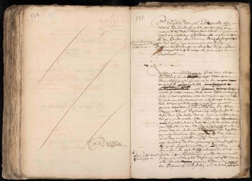 622 Op Huijden 543 huijden den 22e„ December 1681 Hebik David Stafmaker Varlet Openbaar notaris, bij den Hove van Holland geadmit teerd 't Amsterdam Resideren, mij vervoegt bij den Persoon van harmen slechterhors H, als procuratie - hebbende van Trijppe en den selven uijt de naam en van weegen sr„ Willem van Brederode, en Pietersen Beugen gedaen Hakk Janse voorgeleven in de volgende Insinuatie, en Protestatie en Pieter van Bengen Willend van Brede te vand schipper van Sark Janse gekogt hebbende een deens scheepje nigenaamt de som, de voors eenigen tijde op den geleden Jongstleden