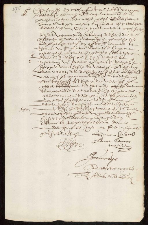 Stadsarchief Amsterdam, archieftoegang 5075, Archief van de Notarissen ter Standplaats Amsterdam, 1578-1915, inventarisnummer 2220, ADRIAEN LOCK, Minuutacten, 1666 Januari-1666 April; met alphab.index in 2260., 1666