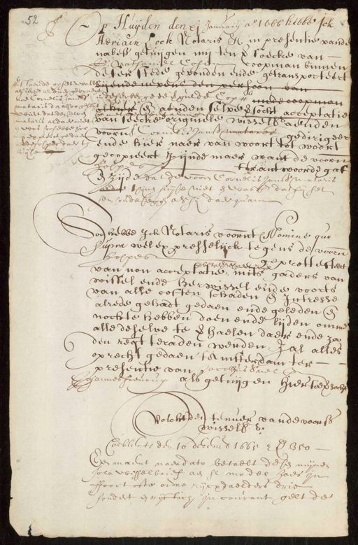 Stadsarchief Amsterdam, archieftoegang 5075, Archief van de Notarissen ter Standplaats Amsterdam, 1578-1915, inventarisnummer 2220, ADRIAEN LOCK, Minuutacten, 1666 Januari-1666 April; met alphab.index in 2260., 1666