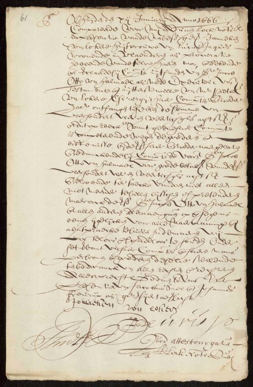 Stadsarchief Amsterdam, archieftoegang 5075, Archief van de Notarissen ter Standplaats Amsterdam, 1578-1915, inventarisnummer 2220, ADRIAEN LOCK, Minuutacten, 1666 Januari-1666 April; met alphab.index in 2260., 1666
