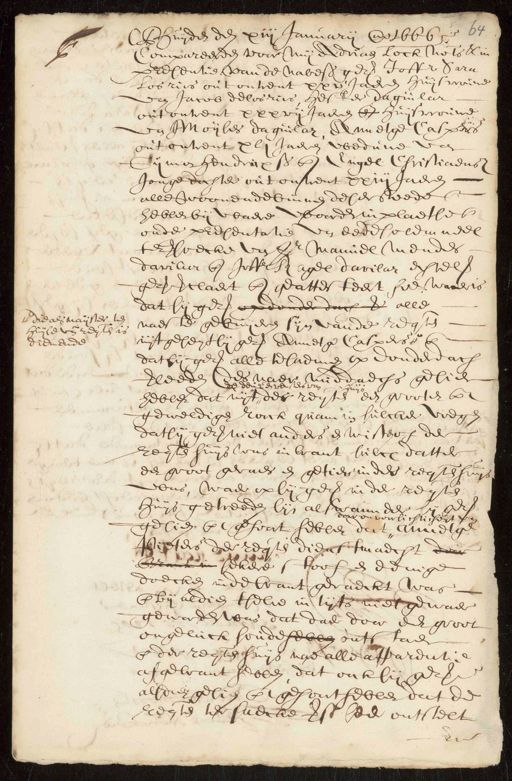 Stadsarchief Amsterdam, archieftoegang 5075, Archief van de Notarissen ter Standplaats Amsterdam, 1578-1915, inventarisnummer 2220, ADRIAEN LOCK, Minuutacten, 1666 Januari-1666 April; met alphab.index in 2260., 1666