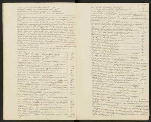 zoodanig als al hetzelve zich bevindt en ge vonden wordt ten woonhuize van de requirante weduwe, staande te Haarlem mermeer, aan den Vijfhuizer - en Aalsmeer der weg. De opgave en aanmijzing der goederen zal worden gedaan door de requirante weduwe, die na het overlijden van haren man in het bezit der gemeenschap is gebleven. De goederen welke bij de boedelbeschrijving het onder werp van waardering behooren te zijn, zullen worden geschat door Martinus van Lith, timmerman en win kelier, wonende te Haarlemmermeer, tot dat einde mede tegenwoordig en daartoe door de belanghebbenden ver zocht, dewelke verklaarde deze waardering naar zijn beste kennis en wetenschap te zullen doen, zooveel mogelijk naar de joiste waarde der voormerpen, gegrond op den staat waarin dezelve zich thans bevinden, derzelver bruikbaarheid, alsmede op den prijs, welke een en ander bij openbaren ver koop maarschijnlijk zoude opbrengen, welke waardering hy Comparant deskundige verklaart ten allen tijde, indien noodig en ter plaatse waar zulks zal gevorderd worden, met eede te bevestigen. Na vast stelling van het bovenstaande hoofd van dezen inventaris is men overgegaan tot de inventarisatie, in volgende maniere. Meubelen, huisraad en inboedel 4 50 twee tafels en zes stoelen, vier gulden vyftig cents — een kagchel in toebehooren, vyf gulden een turfkist, een gulden vyftig cents 1 50 een kabinet, zes gulden daarin eenige kleedingstukken, nader te om schryven spiegel, kistjes, trommels, bladen en koffijmolen drie gulden vyftig cents 3 50 een duif en koor, een gulden vyfentwintig cents- 1 25 eenig aardewerk, drie gulden 3. een bed en toebehooren, zeven gulden een dito, zestien gulden 16. — twee hoitjes, een gulden vyftig cents 1. 50. een ton mitzuurkool en pur vaatjes, twee gulden vyftig cents 2 50 een ton mitspek en vleesch, twee gulden vyftig cents„ 2 50. eenige manskleederen, eenentwintig gulden 21. eenige vrouwe kleederen, zestien gulden 16. — een zilveren horologe en dito ketting, negen gulden een zilveren knipje en beurs, vier gulden vyftig cento„ 4 50 een dito doosje, een gulden voorts 14. eene party aardappelen, veertien gulden eene party turf, twee gulden vyftig cents 2 50 In de Smedirij Voorraad van 9 zerwerk en Smidsgereedschap een ploegschaar, acht gulden 8. — Zes staven en twaalf einden yzer, zesendertig Gulden „ 36: — zestien vlakke slekken, zes mathaken, drie gulden 3 „ eenig gemaakt yzerwerk, vergulden vyftig cents 4 50 dito, dito, vyf gulden - 5. een aanbeeld en schroef, zesenvyftig gulden- 56. — een Slypsteen, een gulden — een bak, een gulden een noodstal, acht Gulden negen schoppenbakken, twee gulden vyftig cents„ 2 50. ƒ 247. 25 ƒ 247. 25 drie zyssen boomen, een gulden 1. eene party steenkolen, achttien gulden- 18. eenig oud yzer, vyf gulden — Makende te zamen eene somme van twee hon derd een en zeventig gulden vyfentwintig cents ƒ 271. 25 een langwirpig schuldboek, ongesolieerd, waarvan het eerste en laatste blad door my Notaris is gewaarmirat geworden. gereed geld de rekwirante weduw verklaart dat er op het overlyden van haren man geene kontanten aanwezig waren- opgave van In- en dit schulden. Derckwerante medam verklaard dat de gemeenschap te vorderen heeft van de natemelden personen, wegens door den erflater verrigt smidswerk, als van- Leenheer, zeven gulden vyfenveertig cents. „ 7 45 van den Berg, tweeendertig gulden 32. — van zeyst, twaalf gulden 12. Wisboom, honderdienenvyftig gulden- 151.— M. Tanis, vyftig gulden — 50 85. heen Beek, vyfentachtig gulden 10. de Smet, tien Gulden Pol, drie en zeventig gulden - 73. Jan Bol, zestig gulden 60. Baltman, zeventig gulden 70 Jacobootie, vyftien gulden 15 C krooni, vyftig gulden 50 k veerman, tien gulden 10 20 Jan Gul, twintig Gulden. en van van Zeyst, voor geleverde varkens, veertien 14. gulden dat zy voorts na het overlyden van haren man van diversen heeft ontvangen de soms 190. — van honderd negentig gulden Schulden Verklarende dezelve rekwirante al verder dat de boede belast is met de navolgende schulden aan M van Lith, timmerman, Zevengulden acht Cents. ƒ 7.08 aan A de Lint, voor steenkolen, zevenenveertig 4767 — gulden zevenenzestig en een halve cents- aan J H van Ziegler, ter zelfder zake, achten 48. — veertig gulden aan A. H van zeyst, magenmaker, twaalf gulden 12 71 eenen zeventig cents- aan W Bernet en compagnie, voor geleverd yzer driehonderd achtenvyftig gulden vijfentwintig cents „ 358 25 aang de Vlaming, heel en verloskundige, twee en „ 32 60. dertig Gulden zestig cents aan den Heer Wisboom, voor huis en landhuur over achttienhonderd negenenvyftig, honderd vy„ 105. gulden aan denzelven voor stroo, vyf gulden 5. aan denzelven voor een varken en geleverd 31. vleesch, een en dertig Gulden aan het kantongeregt te Haarlem, voor eene voorgenomene doch niet ten uitvoer gebragte verzegeling des boedels, eenentwintig gulden „ 21.65 in Een zestig cents verklarende derikwirante weduwe dat zij nog rekeninge ten laste des boedels te wachten is van schipper spargaren van wareren en Jan Gul. Dit gedaan en niets meer gevonden of aanpartyen beken zynde om op dezen inventaris gebragt of daarby opgegeven te worden, is al het geen daarin vermeld is, gelaten onder de bewaring en in het bezit van de requirante weduwe, die zulks erkennende zich daarmede belast en tevens aang om al hetzelve wederom te zullen