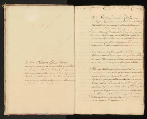 In den Naame Godes Amen kennelijk sij eenen Iegelijken dien des behoord hoe dat Op Huijd den 1„e Januarij 1763 sijnde Zaturdag Snamiddags ten vier Uuren voor mij Jacob Elout openbaar Notaris bij den hove van Holland geadmitteerd binnen de stad Haarlem resideerende ende voor de naargenoemde getuijgen, in eijgener Persoonen gecon pareerd ende verscheenen sijn is stver. middags ten 4 uuren 28 Sr. Johannes der Kinderen en Juffr: Geertruijda van den Haag Echteluijden wonagtig te Heemsteede, dog op 't passeeren en ondertekene, deser present binnen dese Stad, mij Notaris bekend, dewelken in over¬ denkinge van de sekerheid des doods, ende de onsekere tijd en Uure van dien, verklaarde geneg¬ te sijn van hunlieder natelatene goederen te disponeeren op de navolgende wijse en Eerstelijk verklaarden sijlieden te wederroepen ende te niette te doen alle voorgaande Testa¬ menten, Codicillen, en andere soorte van uijtter¬ te wille, en sulx op nieuws disponeerende Soo verklaarden sij Testateuren 't sij den eerst¬ stervende van hun kind of kinderen bij den ande¬ ren verwekt, in 't leeve, nalaat, ofte niet, uijt egte liefde en genegentheid, malkanderen over en weder over, dat is de eerststervende de langst¬ ^of haare leevende bij dese te stellen, tot sijne ^ eenige en algeheele Erfgenaam en dat in al dat geen twelk de eerststervende eenigsints metter dood sal koome te ontruijme en natelaten, met vollen Regten