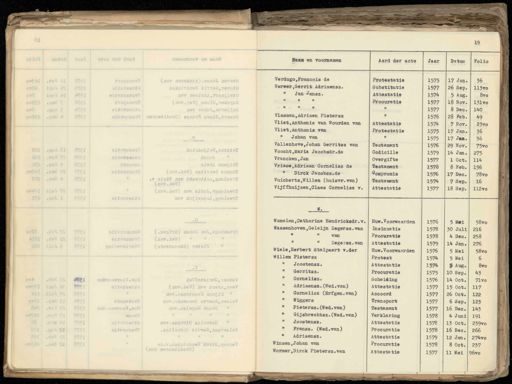 op m.s.B.M. (nsv nexebnix).aansl. nevet 8 eis eijsjaetj. a/o IIbneh jl II eD, revrj8 eijsjaepor nev nesixbA,Jionjej8 JToqans nev.bew) sesiO.renoyn8 nev nedol,neregins eijsjaejjk eijsnwoor? menwetiberD) aanstH aeslO,Jresw3 eijstuoor NotmbrjteH,axotjesI eijsjaajj. doos aiedA nampidl BTOO53 (nev.bew) saijlixeD asmodT etjelyse v aiofd nev JdoendieA,8moisetI (mev.bew) (mev.bew) nev alroL, egmoisetT mev Notiwebol, mofaert eltsis (.negir8) sans Amst. eysdneijd ofJSTUOO ( EdV.D) eik (alusjuoexa) nefisswrooV.wE. Ieftodai mO, TejjsV 1521 (mev.bew) nsv JnelA,meeV eijsjaejt nev.sanejaook mompt 8 Jne Bja nev.rbnejne? ejxenD,nealeV. 100V.w. nev.salegna doosl. mev.saxorid affenroD eijstuoort .saffencoO JlITeD.mamtealev. .sadoi nbneh xoiiC,geme bijs 1 Naam en voornamen Verdugo, Francois de Verwer, Gerrit Adriaensz. Jan Jansz. Vlasman, Adriaen Pietersz. Vliet, Anthonis van Wourden van Vliet, Anthonis van Johan van Vollenhove, Johan Gerritsz van Voocht, Maria Jacobsdr.de Vrancken, Jan Vriese,Adriaen Cornelisz de " Dirck Jacobsz.de Vuicherts,Willem (huisvr.van) Vijffhuijzen, Claes Cornelisz v. Wamelen,Catharina Hendricksdr.v. Wassenhoven,Geleijn Zegersz.van van Zegersz. van Wiele, Herbert Stalpaert v.der Willem Pietersz Joostensz. Gerritsz. Cornelisz. Adriaensz. (Wed.van) Cornelisz (Erfgen.van) Wiggers Pietersz. (Wed. van) Gijsbrechtsz. (Wed.van) Joostensz. Fransz. (Wed.van) Adriaensz. Winsen, Johan van Wormer, Dirck Pietersz.van Naam en voornamen Aard der acte Jaar Verdugo, Francois de Protestatie 1575 1 Verwer, Gerrit Adriaensz. Substitutie 2 1577 Jan Jansz. Attestatie 1574 Procuratie 1 1577 1577 Vlasman, Adriaen Pietersz 3 1576 Vliet, Anthonis van Wourden van Attestatie 1574 „ Vliet, Anthonis van Protestatie 1575 1 Johan van 1575 1 Vollenhoven Johan Gerritsz van Testament 1576 2 Voocht, Maria Jacobsdr.de Codicille 1579 1 Vrancken, Jan Overgifte 1377 „ Vriese,Adriaen Cornelisz de Testament 1578 „ 3. Dirck Jacobse de Compromis. 1576 Vuicherts, Willem (huisvr.van) Testament 1574 Vijffhuijzen, Claes Cornelisz v. Attestatie 1577 1. Wamelen,Catharina Hendricksdr.v. Huw. Voorwaarden 1576 1 Wassenhoven, Geleijn, Zegersz. van Insinuatie 1578 30 van Procuratie 1 1578 Zegens van Attestatie 1579 12 Wiele, Herbert Stalpaert v.der Huw. Voorwaarden 1576 5 Willem Pieters Protest 1574 1 „Joostensz. Attestatie 1374 2 Gerritsz. Procuratie 10 1573 Cornelisz. Scheiding 1576 14 Adriaensz (Wel.van) Attestatie 1577 15 Cornelisz (Erfgen.van) Accoord 1577 26 Wiggers Transport 1577 6 Pietersz. (Wed. van.) Testament 1577 1.e Gijsbrechtsz. (Wed.van) Verklaring 4 1578 Joostensz. Attestatie 1578 13 Fransz. (Wed.van) Procuratie 1578 1e Adriaensz. Attestatie 12 1579 Winsen, Johan van Procuratie E 1578 Normer, Dirck Pietersz, van Attestatie 1577 11 Aard der acte Jaar Datum Folio Protestatie 1575 17 Jan. Substitutie 26 Sep. 1577 113vo Attestatie 1574 5 Aug. 8vo Procuratie 18 Nov. 1577 131vo 8 Dec. 1572 140 20 Feb. 1576 van Attestatie 1574 7 Nov. 23vo Protestatie 1373 17 Jan. 36 1575 36 17 Jan. van Testament 1376 29 Nov. 7570 Codicille 1579 14 Jan. 275 Overgifte 1577 1 Oct. 114 de Testament 1578 8 Feb. 156 Compromis 1576 17 Dec. 78vo van Testament 1574 16 7 Sep. isz v. Attestatie 1577 10 Sep. 112vo ksdr.v. Huw. Voorwaarden 1576 5 Mei 58vo SZ. van Insinuatie 1578 30 Juli 216 Procuratie 4 Dec. 1578 258 D.o van Attestatie 1579 14 Jan. 276 der gepareerde 1576 3 mei 58vo Protest 1574 5 Mei Attestatie 1374 5 Aug. 8vo Procuratie 10 Sep. 1573 43 Scheiding 1576 14 Oct. 71vo 9 Attestatie 1577 13 Oct. 117 27 Accoord 1577 26 Oct. 122 Transport 1577 6 Sep. 125 Testament 1577 10 Dec. 145 van) Verklaring 4 Juni 191 1578 Attestatie 1578 13 Oct. 239vo Procuratie 1578 16 Dec. 266 Attestatie 12 Jan. 274vo 1579 Procuratie 8 Oct. 1578 235 Attestatie 1577 1 Mei 96vo