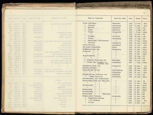 nemsntoov de men eJoe IJD IIII nev Jneiogie, eboine Neijstuor 0v18 nite eijsjaetos 998 eijstuoor .J stodogers ge- eijsjaetjk .38G neilijk 1e „samsba ogu Jaemsje aesIO,as SEJ etjetwoord (nev.bew.) NOTIG JESJOT J TOSTEI afmoIqmoO nsv jl T T D, OIJsJaeJJA SJIerD, aJ Jnemsjaal (nsv.bew) saxoriC nesttbA. aav jlesvoi, neaym etJSTUOOT eijsjaetja (.Tvaind)sansb aflennoO.nemt Besdob (nev.bew) xoriC,nam Jtoganstr. mev rijedsalIE, Janos eijerwoorI eijsjaetjA (.bew) nev jdoerdagie (nsv.neg/na) satIenno' meb. JroquaetT mesITDA, Tesl. eijsjaetjk hav gesloot .samsI. D 1 „samesITDA DIJSTWOg heb mei eyre. Iba Tejuouw tot boe Jnemsjael saffemmoO 5ee (mev.bew) sansL SwtO .JTh KaffemmoI SaITOIT t etiemoO .soo SBJYLAM de nemsntoov de men 3 Feb. mev JmendtE, ebomexore8 Neijstuor nite gijteten eijstuoor elodonsr2, 90 Tja 8. eijsjaetjk gelltW Ieos „samsba oguH, folio Jaemsje aes IO.aestm SEJ (naar, beWijs) Notid, Jnob tooten JTesten. Joos stmolgmon- nev jlIIeD, en 108 IJsjaajja evremd,aijftrod. Jnemsjaal (nev.bew) saxoriC nestrba,doood nev JresvoD, meaqu'daac8 etJSTUOOT eijsjaewA (.Tvaind)sansb affenroO, namreijjoe nsdol, JU08 (gev.bet) vortC. nameasr8. twee nev dgedaalfE, Janodonord Ditparnoot (.bew.) gev tteerdohin (nsv.negftB) sallenno mst, 11u8 JroquaetT „ mesITDA.Testellu8. eitstoefje aen geslootM,msG. aamst IeinsG 1 spoetsba¬ tegenen heb mei meed XXYBD, atseo Iba Tejuouw Otboi Jnemsjaal saffenroO MortO (mev.bew) sansL SwtO KaffemmoI satrofij etiemoO SBJYLAM Naam en voornamen Aard der acte Jaar Datum Folio Dirck Steffensz. Testament 13 Feb. 1577 8600 Pietersz. Attestatie 11 Mei 1577 9600 Maertsz. Transport 6 Sep. 123 1577 Jansz. Codicille 4 Nov. 128 1577 Claesz Procuratie 8 Nov. 1577 131vo 17 Dec. 1577 145 Dircksz Obligatie 1578 20 Apr. 176 " Claesz. Procuratie 11 Aug. 1578 218 Hendricksz (Crediteuren) 1578 10 Dec. 263vo " Ysbrants" Attestatie 1578 31 Dec. 269ve Dobbe, Garbrant Approbatie 11 Nov. 1575 4300 Dol,Alydt Cornelisdr. Trouw 16 Jan. 276vo 1579 Doorninck,Johan van Procuratie 1578 11 Mei 180vo Doorninck 1578 11 Mei 181vo 11 Mei 1578 182vo Dorp, Elisabeth 108 12 Aug. 1577 1578 21 Febr 165 " Cornelia Pietersdr.van Testament 1578 224 17 Aug. " Pieter van (Voogden o.d. Procuratie 1577 7 Aug. 106vo kinderen van) Drencwaert, Johan van Attestatie 3vo 1573 29 Dec. Duyffie Dircksdr. 1577 23 Jan. 7900 Duijn, Willem van der Overlevering 1576 20 Jan. 4710 Procuratie 1576 20 Jan. 48vo Duijnen, Willem Cornelisz van Overgifte 1578 4 Juni 190 Claes Jansz. van Procuratie 1578 26 Aug. 222vo Duivenvoorde, zie: Duvenvoorde Duvenvoorde,Johan van (Wed.van) 1575 11 Jan. 34 44vo 1575 19 Nov. Duivenvoorde " " 1578 11 Mei 180ve „ 1578 11 Mei 181vo Duvenvoorde " 1578 11 Mei 182vo Duivenvoorde " 1578 11 Mei 183 Duvenvoorde " (Wed. van) 1579 31 Jan. 282 Deyman, Arent Pietersz. Attestatie 1578 11 Oct. 239 Enghbrecht Dircksz. 1578 13 Apr. 170 Jan Pietersz. 1574 5 Aug. 8vo Willem 1577 6 Nov. 131