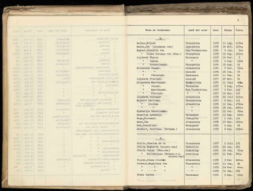 9J58 aametteja xortO Jaemsjaal elijs saJre N-o efftofboO .0 Saesten eijstuoor SANSTO stijsgrid. eijstuso Nots. (nezwejiber.) aJnsldaY eijsjaest JnstdlsD,eddoO tjsd. batIennoØ JbyIA,IoO nev nedol,xontmooC o ij Hontavooft bastlm.qtob du stlemmoD ISV Jaems nsv Tejel etjstusch nev medeb, jjeswonelC eijsj inbadoatG elffyvC reb mev melitW, mijinC. pntievel neve eiJSTWOOI aflemroo miliW,mentinC sj ih senst aesf.D ebroovnevw : eis,ebcoovneving (nsv.bew) nev asdoL,ebroovnevuC " ebloovneving VIII (MBV.be) Sallen Naam en voornamen Aard der acte Jaar Datum Folio Eelkes, Elinck Procuratie 11 Aug. 217vo 1578 Eests,Jan (kinderen van) 24 Mrt. Approbatie 1578 167vo 9 Jan. 4vo Egmont,Cornelia van Huw. Voorwaarden 1574 " Claes Dircksz van (Wed.) Procuratie 22 Sep. 23lvo 1578 Lijsbeth Thonis Testament 14 Nov. 1573 „ Luyten 1574 5 Sep. 12vo 1574 Fredericksdr. Procuratie 16 Sep. 21 Elisabeth Jansdr. Attestatie 1574 7 Nov. 23vo 1576 26 Jan. Accoord „ Pietersdr. 1576 Testament 11 Feb. 54 Lijsbeth Florisdr. Accoord 27 Mrt. 1577 84 9910 Elisabeth Maertensdr. Rendinciatie 1577 11 Juni Kwitantie Jansdr. 5 Aug. 105 verso 1577 Maertensdr. Huw. Voorwaarden 4 Nov. 1577 129 „ Florisdr. 1577 18 Dec. 147 Lijsbeth Dircksdr. Attestatie 22 Juli 21200 1578 9 Dec. Engbert Gerritsz. Protestatie 1577 141 Jacobsz. Attestatie 12 Jan. 274vo 1579 1579 26 Jan. 280 verso Eymbertje Hendricksdr. 79 verso 23 Jan. 1577 Engeltje Symonsdr. Testament 1576 12 Sep. 6200 Enge Dircksdr. Overgifte 114 1 Oct. 1577 Enne, Jan Attestatie 1578 10 Dec. 264vo Erm, Cornelisdr. Transport 1576 68 5 Sep. Eeuwout, Gerritsz. (Erfgen.) Attestatie 1578 6 Sep. 229vo Faille, Charles de la Procuratie 1577 1 Juli 101 Philip Engberts (huisvr.van) Codicille 29 Jan. 1579 281 Floris Jansz. (Wed.van) Scheiding 14 Oct. 1576 71vo Wollewijnsz (Erfgen.v.d.) Scheiding 1577 11 Feb. 80vo huisvr.van) 3 Nov. Foppen, Claes Jacobsz Attestatie 1578 244 verso Procuratie Foreest, Magdalena van 1575 11 Jan. 34 44 verso 1575 19 Nov. „ 1579 31 Jan. 282 Frans Luytsz. Testament 1574 5 Sep. 12vo Florix Goossen