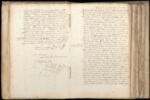 voorsz. buyte huyscrachte tot heemstede,, drye gul. sjrs. In aller manieren als boven verhaelt staet, met welcke voorsz. schiftinge schen dinge ende deelinge den voorn. peertien en over wederzyden verclaerden zeer wel te vreden te wesen, Belovende dezelve voor goet vast ende van waerden naer te comen ondert ouden ende doen onderhouden ten enwigen daegen Ondert verbodt van elcxs hier personen ende goeden tot bedwanck van allen rechten ende rechteren ƒ All sonderaerch 2 Ende versochten aen my openbaer notario voorn. Ber van gemaect ende hen elcxs gelevert te werden behoorlicke acte van scheydige gepasseert ten huyse In forma Aldus gedaen verleden ende gepasseert myns notario „ binnen haerlem den xxvijen O January anno xvc negen ende Nachricht sy by wesen vanden getuygen ondergesz. 889 D'Hillegorij Johan Arentsz „ „ Jan Lambrsz Pieter van blanckeroert de Jonge La cattes for W 16 Quoyssse ebboerden M + ende men anders nyet en konde bemercken Testament van pieter franssen xviij gordtsangh ende zyn huysvrouwe Inder name ons heeren amen. Bij desen jegenwoordigen Instrumente zy eenen ijegelicken kennelick ende openbaer Dat Inden Jaere naeder geboirten desselffs ons heren dienstent vyffhondert negen ende tachtich ter tweeder Indiction des sondaechs den Een negen ende twintichsten dach der maent Januarij omtrent en een uren middach, Impererende den onverwinnelicksten Keyser Rodolphus by goods genaden den tweeden vandier name int veertiende Jaere zyns rycxs, Voor My Michiel Janssz van weerden. Openbaer Notaris Imperiael by den pronunciaten raide van hollat tot depercitie vant notarisscap geadmitteert In bywesen vanden geviegen alhyer ondergenoemt persoonlicke gecomen ende gecompareert zyn Deersame Pieter franssz goudtsmitz ende margriere Jacobs dochter geerhe luijden, beyde poorter ende poortersse der stadt haerlem, (my notario (ders niet wel bekent) In gaenden ende staenden lyve. bemercken elck hebben volcomen gebruyckhuis verstants, memorie ende spraecke soe claerlicken bleecken # De welcke alle beyde ende elcxs bysonder, met heuren vryen onbedwongen wille Seyden ende verclaerden dat zy van elcxs heuren — tytelicken goeden begeerden te disponeren Ende overmits zy geen van beyden, ouders noch te kinderen int leven en hebben. Voorall wilden voorsien dat de langstlevende van hen beyden, voor all — van een goet bylenen ende eerlick onderhoudt (voor soe vele het doenlick es) mochte verzeeckert wesen. Daerome bevelen eerst ende alvoeren heure sielen der genaden goods, ende heure dole lichamen eer kerckelicke begrauinge, heure ben der ende elcxs heurluyder testament, vuyterste wille, ende laeste begeerte, gemaect ende geordonneert hebben, maecken ende ordonneren by desen over beyden zyden reciproche, Dat de langstlevende van hen beyden zal hebben aenvaerden ende blyven behouden, tgebruyck ende lyftochte van allen den goederen hoedanich die zy An ofte wesen mogen