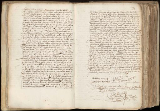 sullen moeren gedogen dat allen dander kinderen van haren broeder die minder ofte geen huwelick goet gehadt hebben, daer tegens voor all vuyt haere testatrices goederen, sullen vergoet ende tegens malcanderen vereffent worden aleermen tot eenige deelinge zal moegen geraecken Soe haere testatrices vuyterlicke wille ende meenige es. Dat teene kint soe veel hebben zal als kander, ende de voors vergoedinge alsoe gedaen wesen daer nae doverblijven goeden gelyck zullen deelen Voorts oft gebiele dat yemat van heuren voors erffgenamen oft legataris met desen heurl. testamentarie ordonnatie ende vuyterste wille nyet tevreden waeren. Ende daertegens oft eenigen poincten vandien deden ofte poochden te doen in rechte ofte daer buyten hoe ende onder wat dexel tselve geschieden mochte Soe wilden ende begeerden zy testaten alle beyde ende elcxs bysonder, dat sulcken opposant oft opposanten van heurl portie ende gedeelte van Derffenisse bespreck ofte legate, hem anderssins uuyt crachte van desen competeren zal ofte zullen versteecken wesen ende blyven ten enwigen dagen. Ende dat in sulcken gevalle desselvens onwilligens portie metter daer zal vervallen ende comen op en geenen van der ffgenomen die desen naercomen voor goet ende van waerden lachten ende houden zullen, welcken goetwilligen erffgen In plaetse vanden onwilligen oock by desen werden geinstitueert, te weten elcxs vanden testaten aen zyn oft haere zyde. Vorder hebben zy testanten aen hen helffs gereserveert ende behouden, elck in heurlieder regardt volcomen macht omme noch meerder ende anders dan hyer boven gescreven staet, jesanneutel oft elck alleen te mogen maecken legateren ende disponeren twaere onder heml. oft elck zyn hant gescrifte xx by twee getuygen oft andere blyckelicke kennisse twelck zy teftonten alle beyde begeerden dat van sulcken crachte wesen zal, ende effect sorteren zalen In allen schyne oft in desen heurl. testamente mede gescreven ende verhaelt ware. Alle t welcke hyer voeren gescreven & verhaelt staet, Seyden & verclaerden Een voors Aelbrecht symonsz ende machvelt de witte testanten tesamen ende elcxs bysonder, doen wettige stipulae aen handen myns notario) heure beyder & elcxs heurl. uuyterste wille ende laetste begeerte te wesen, Willen ende begerende tselve naer elck heurl afflivicheyt vast ende onverbreeckelicken zallen zijn poincten gevolcht ende onderhouden hebben, t'zij in cracht van testament werste wille, codicille, gifte vuyt saecke des doots ofte anders, soo als des menschen raetsten ende viersten wille naer bescreven rechten. ofte goeder gewoonten, van eenigen landen oft steden alder best bestaen ende van waerden blyven mach nyet tegenstaen gebreck van eenigen rechtelicken solemten ten In desen bevonden dien zy testanten voor soe vele alst root es, wel expresse derogeerden ende te nyere deden by desen. Ende versochten ach my openbaer notario voornt hyer van gemaect ende hen gelevert te worden een ofte meer openbaer kustrumen en Inder bester forme Aldus gedaen verleden ende gepasseert, binnen der stadt haerlem ten woonhuyse vanden testanten gestaen inde grote houtstrate Opten daege Jaere maent ende Indictie alsboven, Daer als getuijgen van goeden gelove mede present ende jegenwoordich varen, d'eersame personen willeren maervanssen tafbryckmr ende ijssaack adriaensz ende de poorteren ende inwoorden der voors stadt haerlem, tot kennisse van desen met my notario specialicken versocht ende gebeden Isaac Adriaenssen Willem marti Albart Sijmonsz machtelt dewitte uts: A Quostego michael filius Joannis de Woerslen Notarius En 6.59 par Curiam Hollandie Admissus attestor. Gt. 21 verte M Tewoerden nots.