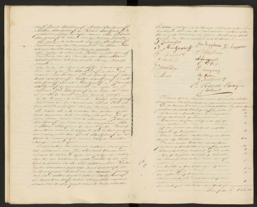 En hebben partijen, de deskundige de bewaardsters en de getuigen, allen aan den voornaemden notaris be kend, met denzelven na gedane voorlezing het hoofd van den inventaris onderteekend- S Duinmeijer Jan Krygsman K: Krijgsman N Muntjewerff T Schuyleman Te Zwart A Langewis J=a Stroobach Hos J: J de wilde Jr P Muntgewerff B.r Beeren I Maas J. Muntjewes C„ Breedt Bruyn Notaris. Hierna tot de voorgenomene inventarisatie overgaande, zoo is gevonden en gewaardeerd geworden In de binnenkamer en in de bedstede Leenbed, twee neuluwen en vier kussens op vyftig gulden p 50. Daaronder-tweekisjes op eenen gulden eenig aardewerk op eenen gulden Daarvoor een paar gordijnen en vol op eenen gulden Op den grond een ledikant met be„ hangsel op drie gulden Daarin een bedje, vier kussens en een lende 14 kussen, op veertien gulden In eene andere bedstede - een bed, twee 50 peuluwen en twee kassens, op vijftig gulden Daaronder eenig aardewerk op drie gulden Nog op den grond - een tafel op drie gulden een leuningstoel, en tien stoelen op „ gulden — een tafeltje en twee bedbankjes op eener gulden en vyftig cents. een regtbank op twee gulden daarin eenig glas en aardewerk op eenen gulden. een suikerpot vier borden een theebosje Transporten ƒ 135 50 werff, Gerrit Muntjewerff, Antje Muntje werk Neeltje Muntjuwerff en Klaas Muntjewerff, by plaatsvervulling van wijlen hunnen vader Gerbrand Meintjewerff te zamen voor een zevende gedeelte„ sen vierde de rekwirante Trijntje Meentjewerff, heusvrouw van den voornoemden Bastiaan Biere uit eigen hoofde voor een zevende gedeelte Ten vyfde - de rekwirante Johanna Muntjewen huisvrouw van den voornoemden Themotheus Schuijlman uit eigen hoofde voor een zevende gedeilte Ten zesde - de rekwirante Sijtje Duinmeijer we duwe van wylen Jan Muntsewerff, en hare zes minderjarige kinderen Gerrit Muntjewerff, Eliza beth Muntjewerff, Neeltje Muntjewerff, Ernst Muntiewerff, Cornelis Muntjewerff en Jannetje Muntiewerff, by representatie van wylen den ge noemden Jan Muntjewerff en in voege als voren is gemeld te zamen voor een zevende gedeelte En ten zevende de rekwirante Neeltje Muntjewerff huisvrouw van den voornoemden Gerrit Hof, uit eigen hoofde insgelijks voor een zevende gedeelte„ En zullen alle de te inventariseren goederen opgele verd, aangewezen en te voorschijn gebragt en alle op gaven gedaan worden door de rekwirante Johanna Mantjewerff, huisvrouw van den voornoemden Thi„ motheus Schuijlman en door Trijntje Zwart, dienstbode wonende te Uitgeest, als na het overlijden van meergemelden heer Gerrit Muntjewerff in het bezit der onderwerpelijke gemeenschap en nalaten. Schappen geweest zijnde — De begrooting der daarvoor vatbare voorwerpen zal geschieden door Jan Stroobach timmerman wonende te Uitgeest, zijnde door partijen als deskur dige ten deze verkozen, en welke schatter by eede afge legd in handen van den Edel achtbaren heer Kanton regter voornoemd, ingevolge diens behoorlijk gere gestreerd proces verbaal van den zevenden Januarij des jaars achttien honderd acht en veertig, beloofd en aangenomen heeft, de hem voorgesteld wordende goederen naar derzelver opregte waarde te zullen schatten